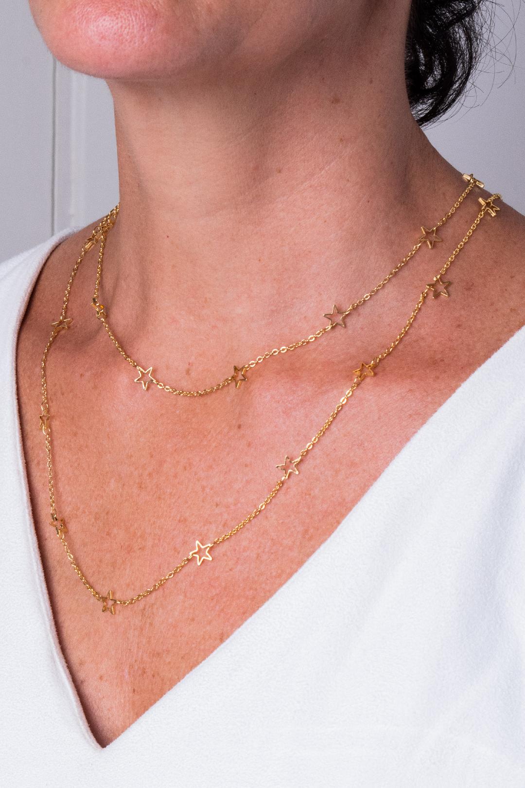 Colar bijuteria dourado com Estrelas , peça coringa no seu guarda-roupa.