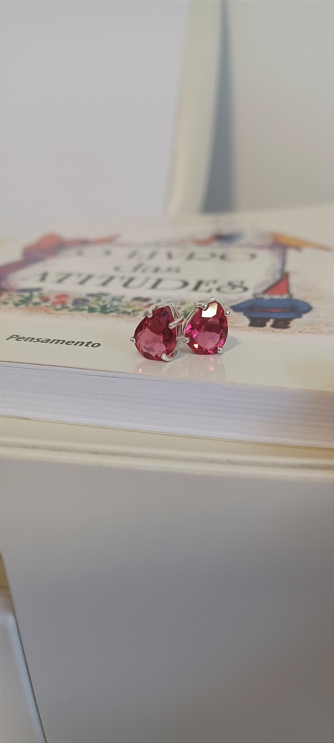 ✨Brinco Prata Gota Cristal Rosa escuro✨